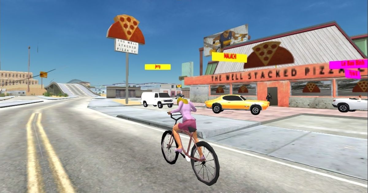 Free Rally: Lost Angeles is a extension of the Free Rally multiplayer series. This time You have play in a huge industrial city simillar LA. You can control your car as a driver and get into someone's car as a passenger. There are also places on the map where you can call a helicopter, as well as some garages to repair cars. There is radio in cars. Bike is availabel.*P* = show-hide car selector*WASD*, *arrows* = drive car and helicopter, and to move while on foot and bike*space* = handbrake on the car and jump on 3d person and bike*e* = exit-enter from the vehicles*f* = get in-get out in the car like as a passenger*q* = pause-play radio*k* = kick passenger*g* = get the car up*v* = seek rocket on the military cars and helicopter*i* = start-stop the engine on the car and helicopter*c* = change the camera view*enter* = type in chat*escape* = return to the menu*2* = add speed on the bike*r* = restart bike and signal on the car*x* = brake on the bike*z* = reverse speed on the bike*b* = jump on the bike