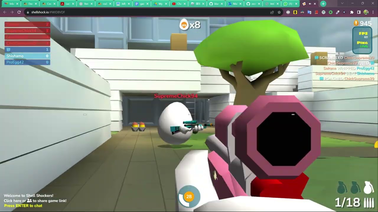 Shell Shockers is a fast-paced online multiplayer shooter where players battle as armed eggs in intense first-person combat arenas. In this action-packed browser FPS, you choose your weapon loadout, jump into live matches, and compete against players from around the world. Each match is quick, chaotic, and skill-driven, making it perfect for players who enjoy competitive online shooting games.