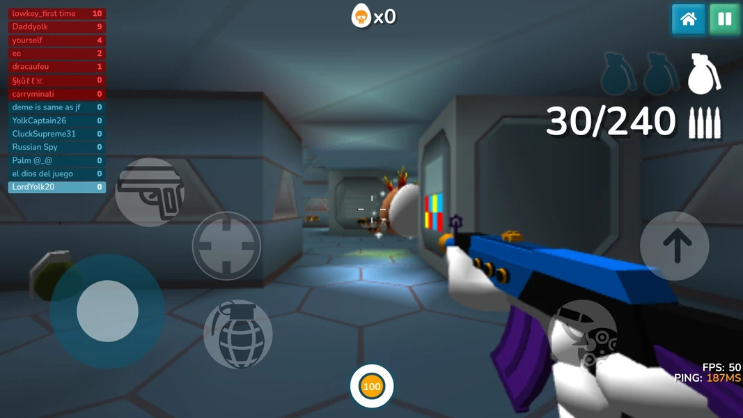 - Objective: Eliminate opposing eggs using various weapons to dominate the leaderboard.